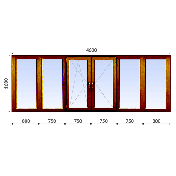 Балкон П-образный 1600x4600 Rehau 70 мм 1-камерный стеклопакет ламинированный в массе энергосберегающий