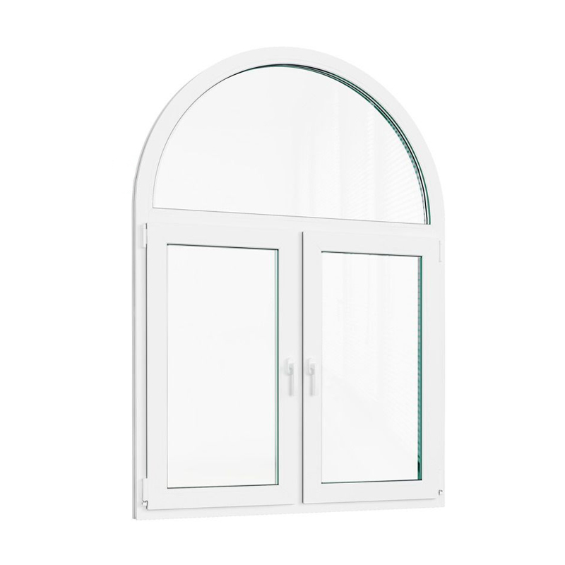 В зависимости от размера оконного проема, арочные пластиковые окна могут быть изготовлены с одной или несколькими створками. Самый недорогой вариант, это глухие створки окна ПВХ и соответствующе, их комбинация с поворотными и поворотно- откидными створками в оконных изделиях. Вот некоторые примеры размещения и видов открывания в арочных окнах.