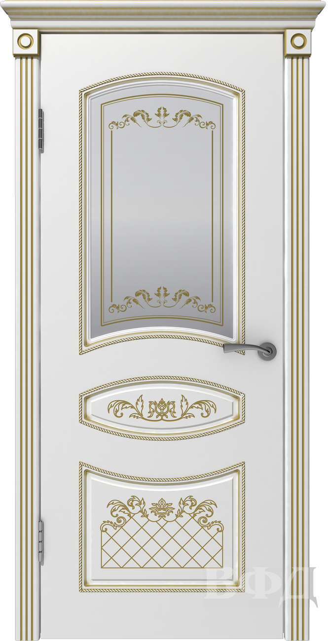 Межкомнатная дверь Адель Белая эмаль стекло патина золото