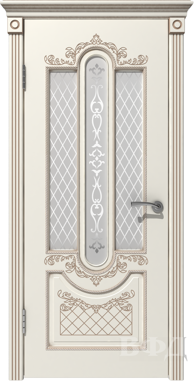 Межкомнатная дверь Александрия Эмаль слоновая кость стекло патина капучино
